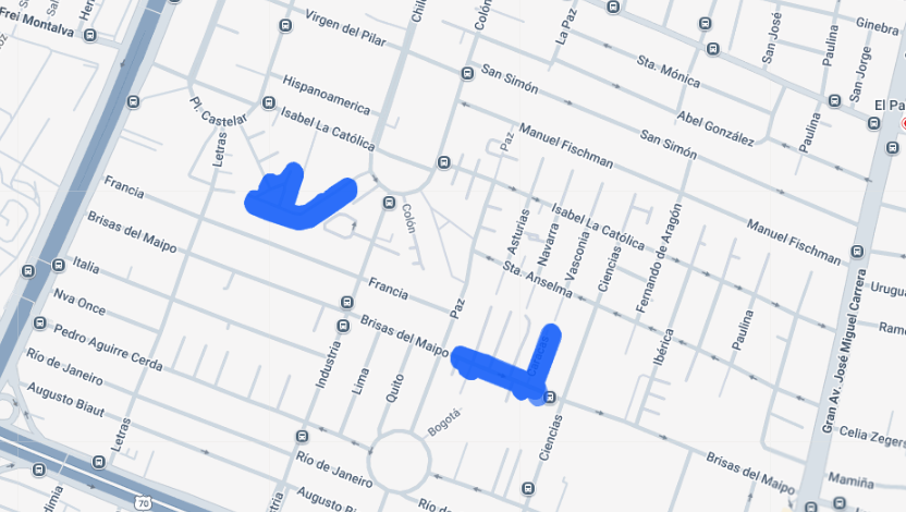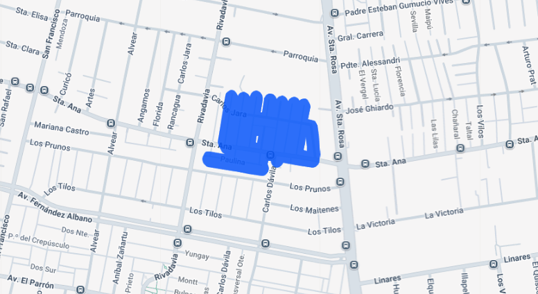 Durante la jornada del domingo, la empresa publicó un mapa que detalla las zonas afectadas en cinco comunas de Santiago.