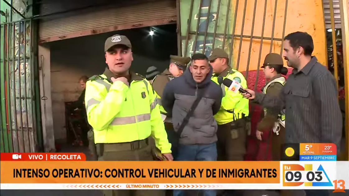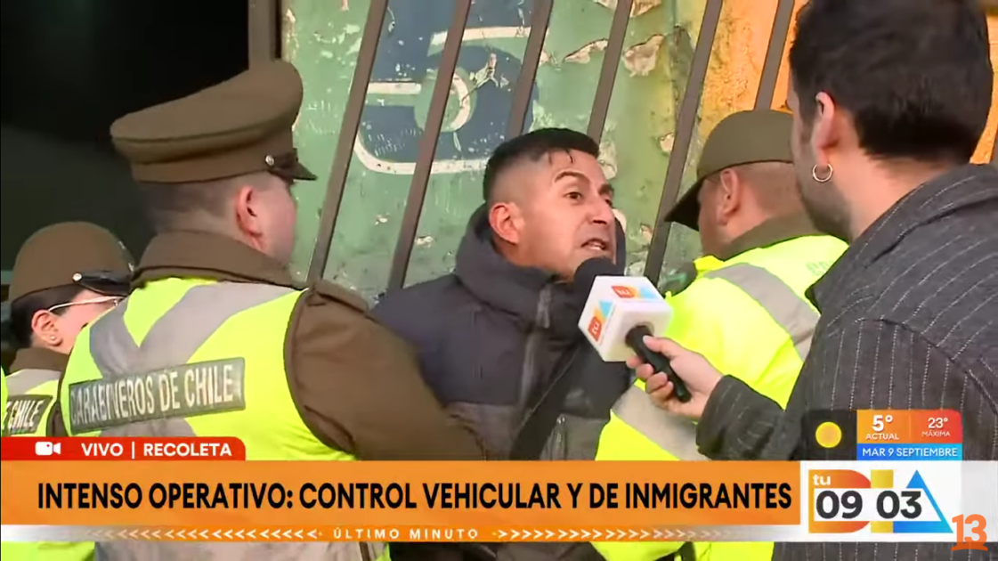 Este martes, el matinal Tu Día de Canal 13 transmitió en vivo la detención de un sujeto que supuestamente habría insultado a Carabineros, durante un intenso operativo en La Vega.