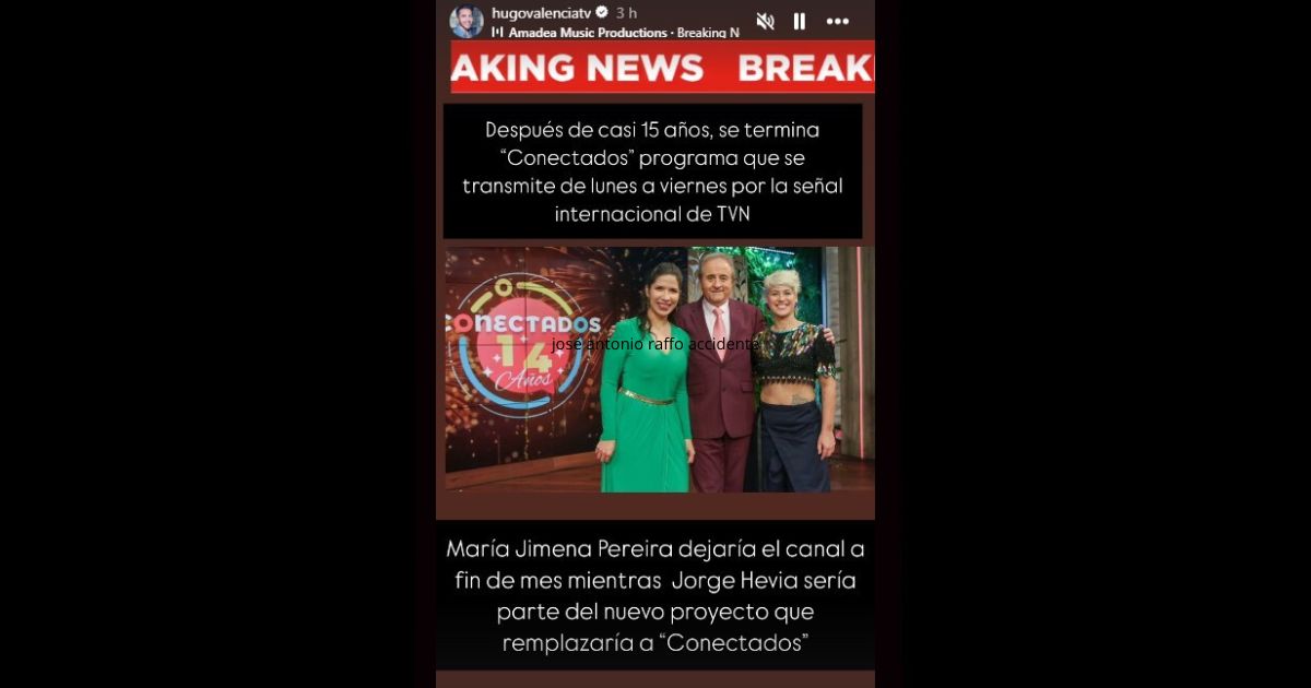“Después de casi 15 años, se termina Conectados, programa que se transmite de lunes a viernes por la señal internacional de TVN”, indicó Valencia en sus historias
