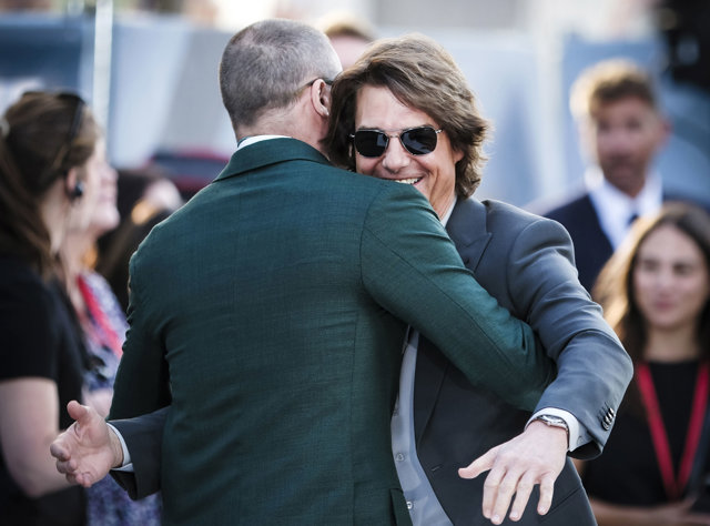 Cruise sorprendió a todos con su aparición inesperada en el evento, donde los fotógrafos captaron el emotivo saludo entre ambos actores.