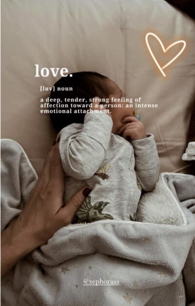En la imagen, se ve al bebé acompañado de un tierno mensaje, proveniente de un filtro de Instagram, el que define la palabra “amor”.