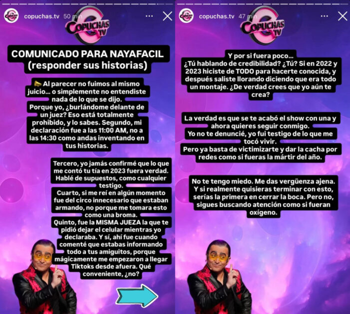 Y no solo eso, porque otro sitio muy similar llamado Copuchas TV, entró en la controversia con Naya Fácil. Quien maneja la cuenta correspondería a un amigo de Natalia Casas-Cordero.