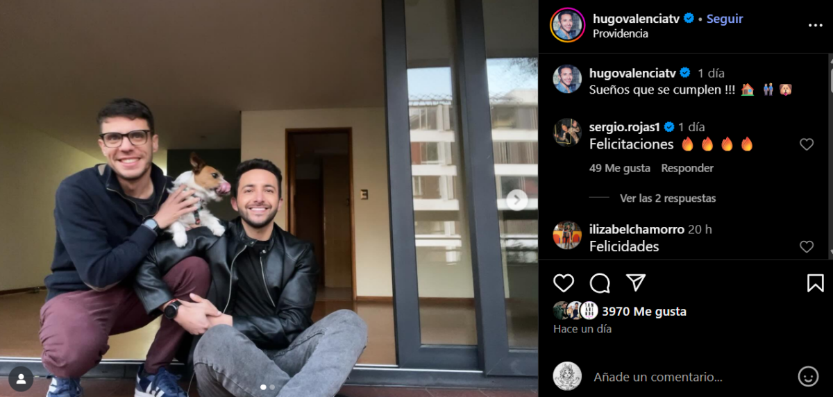 Tal como mostró con dos imágenes en dicha red social, Hugo Valencia adquirió su propio departamento en Providencia junto a su pareja y su perrita, María Rebeca.