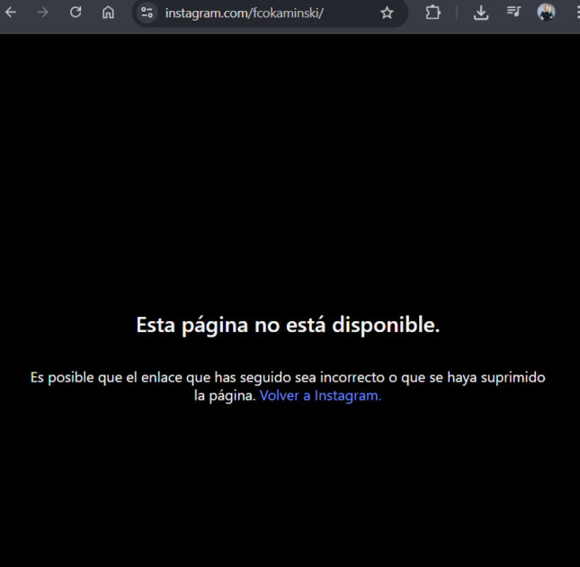 Luego de la entrevista con el programa de Mega, Kaminski decidió cerrar su cuenta de Instagram.