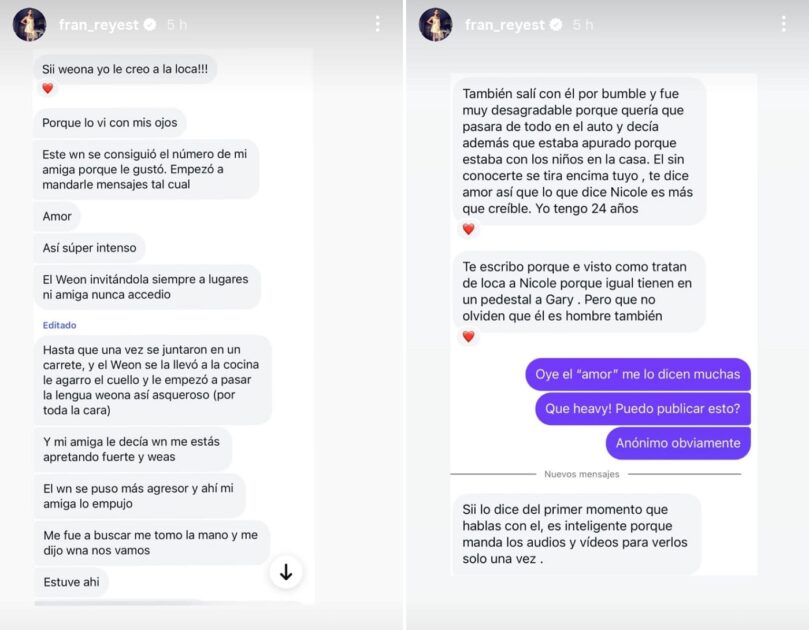 Sin embargo, este viernes se sumaron nuevos testimonios, difundidos a través de la cuenta de Instagram de la periodista Fran Reyes.
