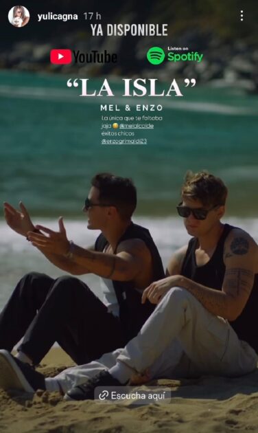 En sus historias de Instagram, la trasandina compartió la promoción de La isla, la nueva canción que Mel estrenó junto a Enzo, debutando como cantante.