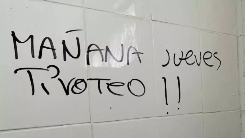 Según detallaron desde el recinto, todo se originó tras el hallazgo de un rayado escrito a mano en uno de los baños del sector de Educación Media. El mensaje decía: “mañana jueves tiroteo”, lo que activó de inmediato los protocolos correspondientes.