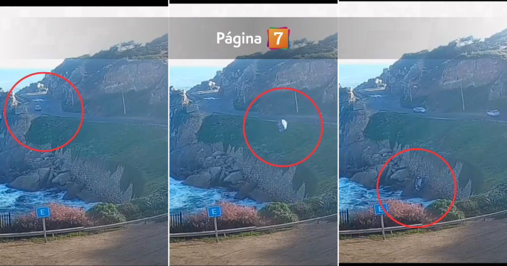 El hecho ocurrió a la altura de la Roca Oceánica, en dirección de sur a norte. Todo quedó registrado en un video que muestra el momento exacto en que el vehículo pierde el control en una curva y termina precipitándose desde una altura estimada entre 15 y 20 metros.