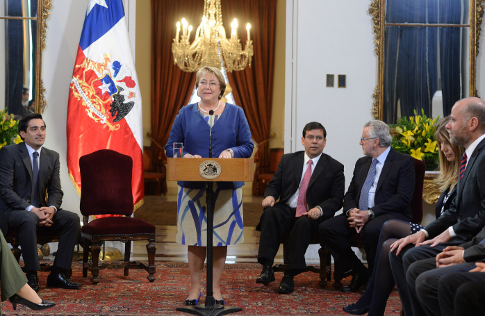 En la ceremonia en el Salón O’Higgins, en La Moneda, la Mandataria estuvo acompañada por el titular de Hacienda, Alberto Arenas, ministros y parlamentarios.
