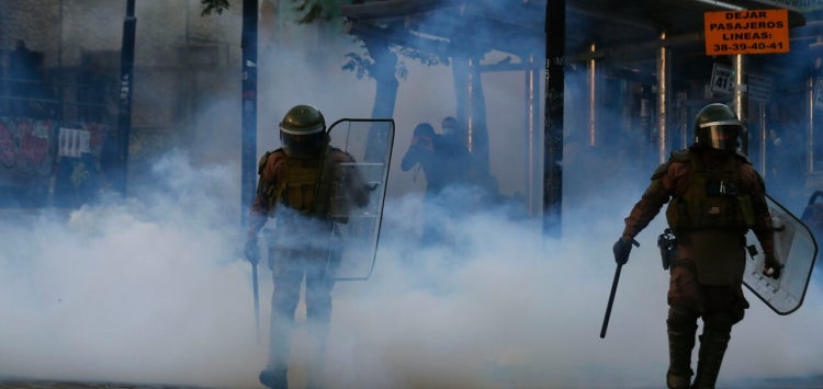 En Talca, región del Maule, una manifestación se congregó en el centro de la ciudad y frente a la Municipalidad de la comuna se registraron enfrentamientos entre civiles y personal de Fuerzas Especiales.