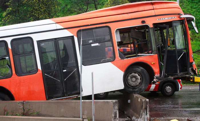 “El accidente se habría ocasionado por lo resbaladizo de la vía, producto de las lluvias que afectan a la capital. El conductor habría perdido el control de la máquina cuando enfrentó una curva, chocando contra las barreras de contención. Esto ocasionó que el bus hiciese un efecto tijera, cortando los pernos de la tornamesa”, se agregó.