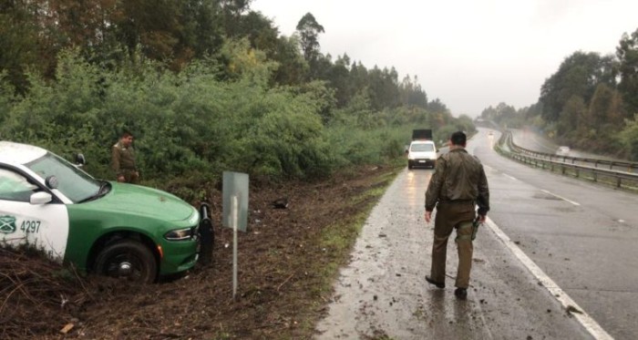 De acuerdo a información policial, dos funcionarios de Carabineros transitaban por la ruta cuando perdieron el control del vehículo y chocaron contra una señalética, debido las intensas precipitaciones que se registraban en el lugar.