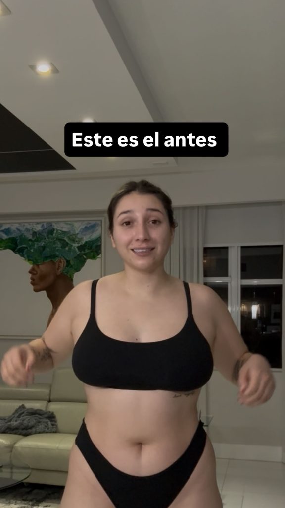 Primero evidenció el resultado de la lipotransferencia, dejando en claro el cambio en su figura. Más tarde, publicó una fotografía en ropa interior correspondiente a cómo lucía antes de entrar al quirófano, explicando que parte de la grasa fue trasladada a los glúteos y que sus brazos también fueron intervenidos.