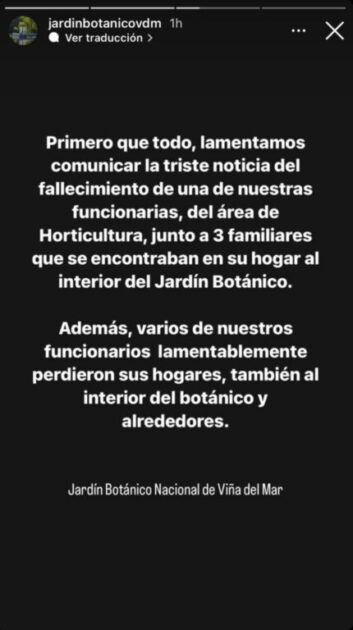 A través de Instagram, el jardín aseguró que en su interior murieron cuatro personas: una funcionaria del área de Horticultura, más tres familiares que se encontraban en su hogar.
