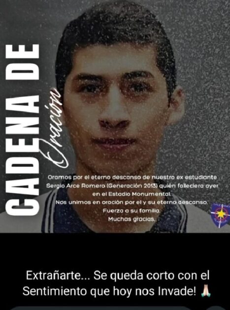 En la imagen se llamaba a realizar una cadena de oración por el joven, mensaje al que Arce agregó: “Extrañarte… se queda corto con el sentimiento que hoy nos invade”.