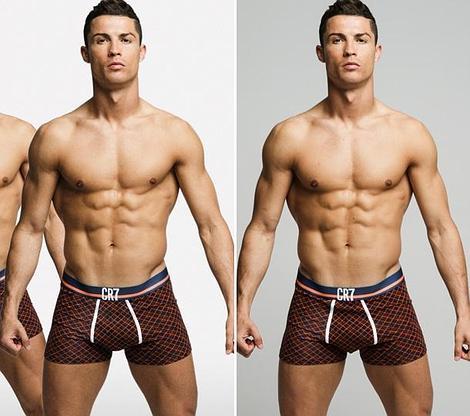Sin embargo, en la última colección de ropa interior CR7, el galardonado deportista compartió las fotografías de la campaña con y sin Photoshop, para acallar las críticas que insinuaban un excesivo uso del editor de imágenes, informó el medio español ABC.