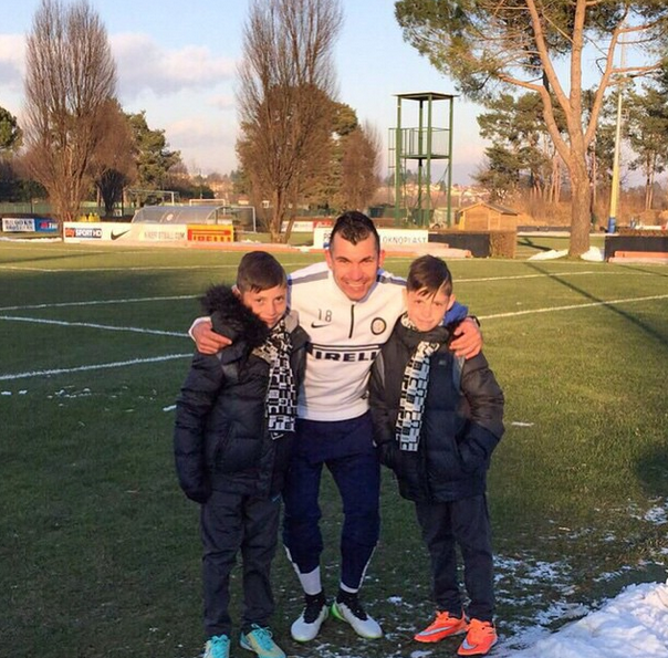 Desde los campos de entrenamiento del Inter de Milán, el ‘Pitbull’ publicó una fotos con sus dos orgullos, con quienes bromeó a través de Instagram diciendo que son los nuevos refuerzos del cuadro lombardo.