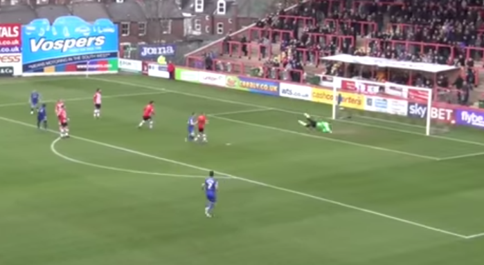 En partido frente Exeter City, el nigeriano de 102 kilos se despachó un tiro de larga distancia, potente, y ajustado que dejó sin opciones al arquero rival. Pese a la hermosa conquista, su equipo terminó cayendo por tres a dos.