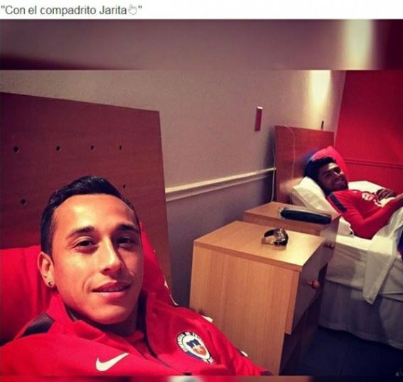 Orellana y Jara comparten dormitorio en Juan Pinto Durán, y como buenos compañeros dieron a conocer su buena onda con una foto de ambos -cada uno en su respectiva cama- que fue publicada por Fabián en su cuenta de Instagram. Hasta ahí todo bien, el tema es que en el mensaje de la foto, el artillero del Celta incluyó un curioso emoticón con la forma de un dedo levantado, haciendo clara alusión al percance de “Jarita” frente a Uruguay.