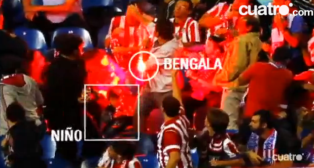 Niño de 2 años recibe impacto de bengala en pleno partido de Champions League