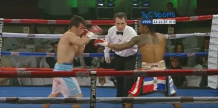 Transcurría el segundo round cuando la promesa dominicana Braulio Domínguez comenzó a lanzar múltiples golpes, pero ante la expectación de muchos, el contendiente argentino Marcos “Maquinita” Martínez no pudo resistir la embestida propiciada por el extranjero.