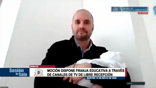 Diputado Bellolio apareció con su hijo recién nacido en sesión telemática: estaba en la clínica