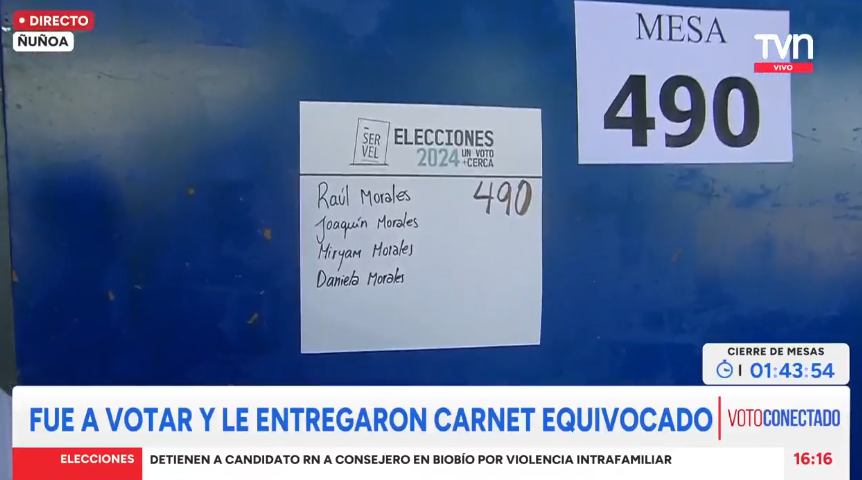 Una confusa situación se generó en esta segunda jornada de votación en el Estadio Nacional, luego de que una mujer denunciara que los vocales de su mesa le entregaron una cédula de identidad equivocada.