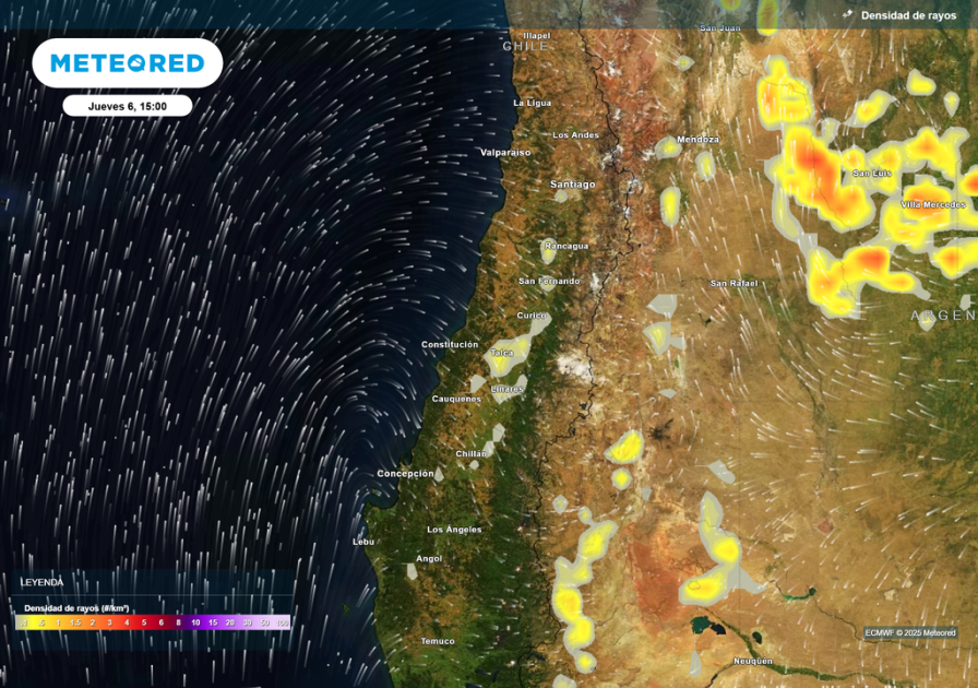 De acuerdo con la meteoróloga de Meteored, Pamela Henríquez, las condiciones se deben a una “baja segregada”, un sistema frío que se desprende de la corriente en chorro y se instala sobre el país, generando nubosidad, chubascos y relámpagos.