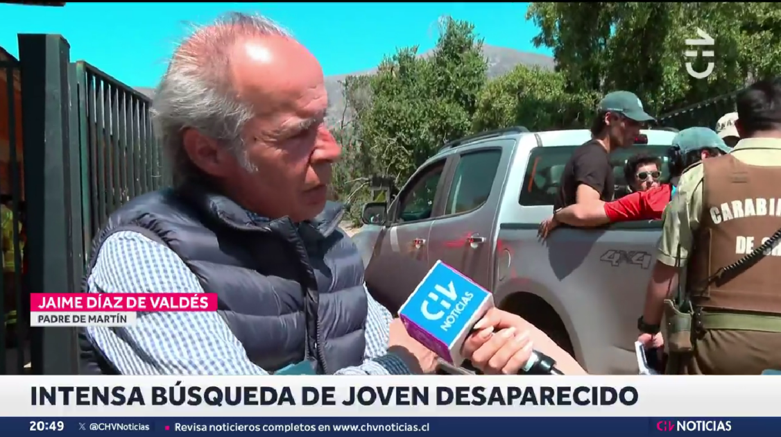 “Hoy (domingo) se hizo una convocatoria muy amplia. Estoy muy agradecido de toda la gente que, con mucha sensibilidad, ha colaborado. Es bien impresionante el escuadrón que se formó para hacer una operación rastrillo en las zonas más aledañas”, detalló Jaime Díaz de Valdés, padre del joven, a CHV Noticias.