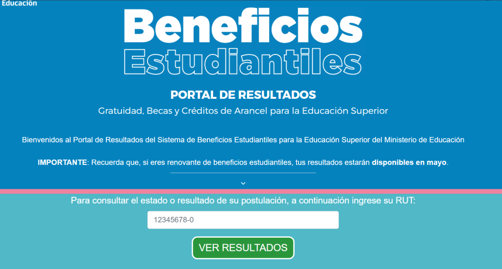 Los estudiantes deberán ingresar a la plataforma resultados.beneficiosestudiantiles.cl utilizando su RUT para revisar su situación.