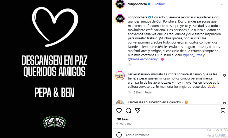Tras conocerse la noticia, distintas cuentas y proyectos vinculados al mundo cervecero expresaron su pesar por la pérdida. Uno de ellos fue la comunidad cervecera Con Ponchera, que dedicó un sentido mensaje en redes sociales.