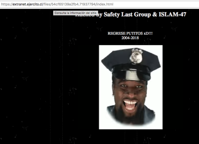 El sitio web del Ejército de Chile fue hackeado por desconocidos que insertaron un video de Youtube con una canción de cumbia villera argentina.