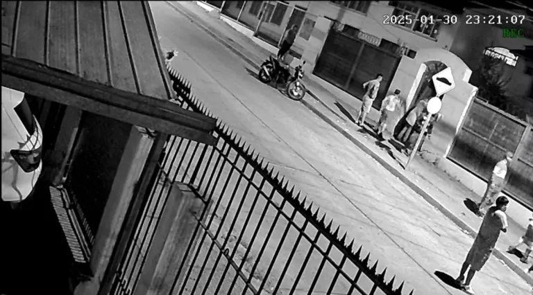 El primer registro comienza pasado las 23:00 horas, donde se puede apreciar a un joven con mochila paseando por afuera del colegio. Alertado por el ruido de los perros y gritos del sujeto, se acerca y sube a la reja para intentar ayudarlo.