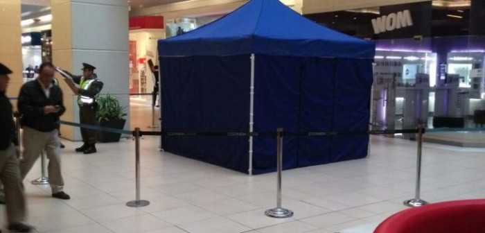 La víctima cayó en el hall del centro comercial, falleciendo de forma instantánea.