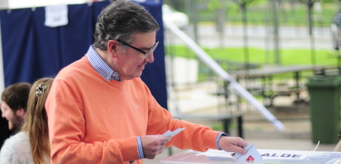 El Alcalde electo por la comuna de Las Condes, Joaquín Lavín, concurrió la mañana de este domingo a ejercer su sufragio al colegio Verbo Divino. En en lugar, una de las vocales de mesa le hizo una curiosa petición.