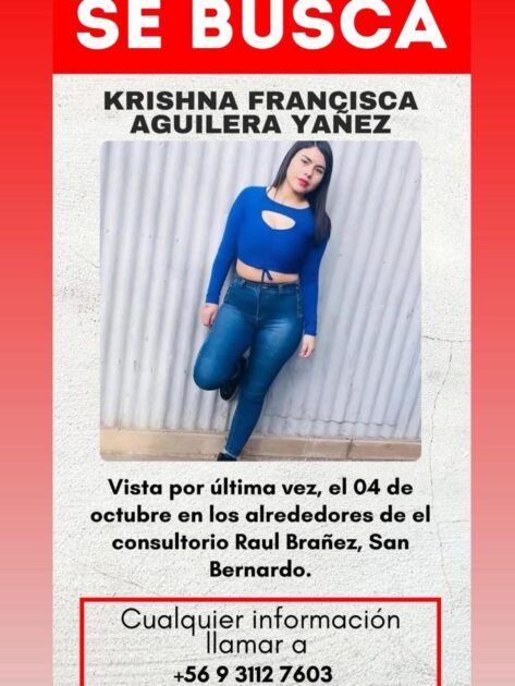 Han pasado nueve días desde que Krishna Aguilera Yáñez, una joven de 19 años, desapareció tras asistir a una disco en Santiago Centro.