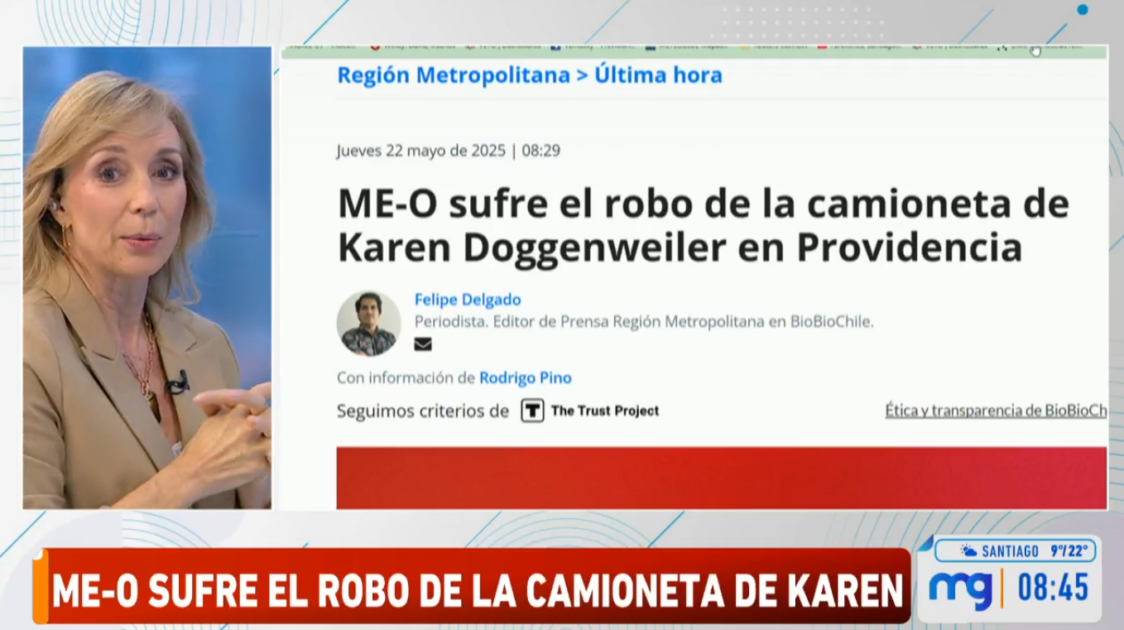 Karen Doggenweiler sufrió el robo de su camioneta Toyota RAV4 mientras su esposo, Marco Enrique-Ominami, participaba de una actividad en el Bar Gran Refugio en Providencia. En el matinal Mucho Gusto, la animadora relató que los ladrones clonaron las llaves del vehículo, lo que permitió un robo silencioso y sin rastros visibles. Doggenweiler señaló que el ilícito ocurrió en un lugar iluminado, pero sin cámaras de seguridad funcionales, lo que facilitó la rápida acción de los delincuentes. La comunicadora expresó su preocupación por la crisis de seguridad en Chile y sugirió medidas adicionales de protección para evitar robos de vehículos y piezas.