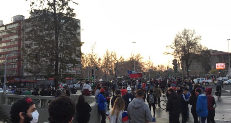 Según informaron desde la institución “30 personas se encuentran agrupadas e interrumpiendo el tránsito vehicular en avenida Libertador Bernardo O’Higgins/avenida Vicuña Mackenna. Personal COP procede a dispersar a los manifestantes”.