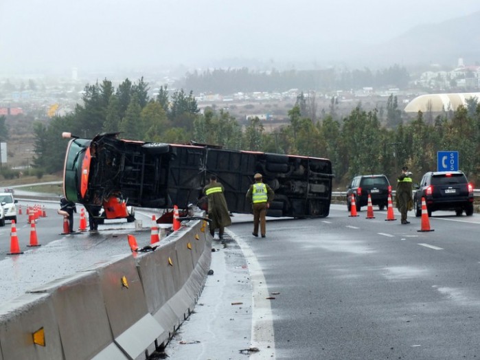 Un accidente se registró la mañana de este domingo en la ruta 68, donde un bus de la empresa Pullman se volcó en el kilómetro 74, a la altura de Casablanca.