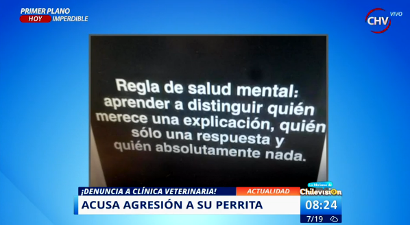 Carla hizo la denuncia en la Comisaría de Los Dominicos, comuna de Las Condes, y espera que la justicia investigue lo ocurrido para que se sepa qué sucedió realmente con le animal y que especialistas indiquen si las lesiones podrían haber ocurrido al interior de la clínica.