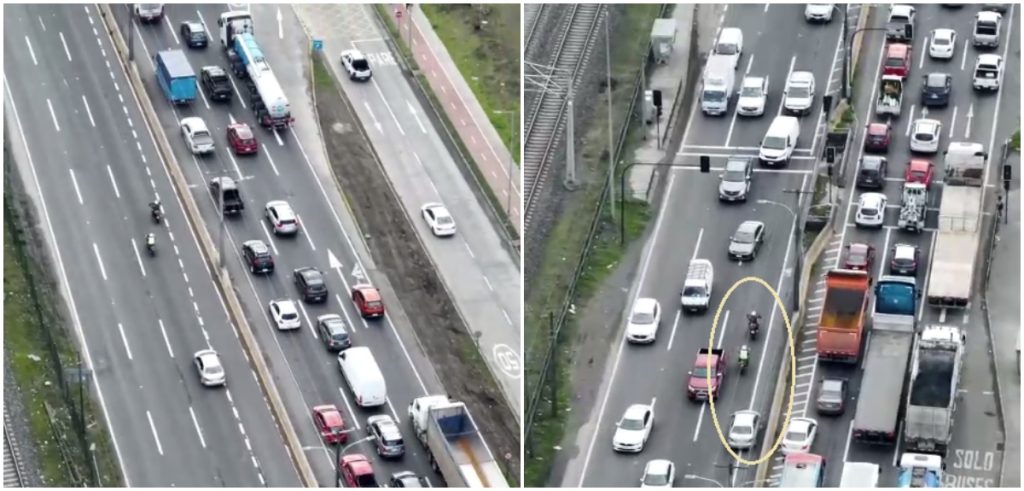 Este jueves, Carabineros escoltó a una mujer en trabajo de parto en medio de la gran congestión vehicular que se registra en San Pedro de la Paz, región del Biobío.