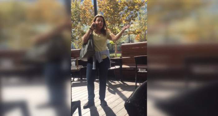 El registro fue compartido por Ruben Segovia, uno de los jóvenes presentes, que registró el video el pasado 01 de mayo. De acuerdo a su relato, el hecho se originó en un local Starbucks del mall Costanera Center, luego que la mujer se molestara porque una joven no movió su mochila inmediatamente tras su petición.