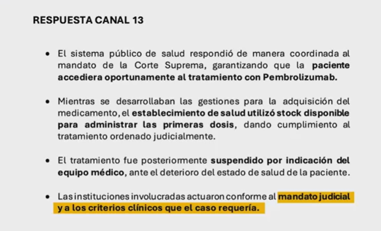 Lejos de rendirse, la familia de la mujer fue a tribunales y presentó un recurso de protección para obligar a Fonasa a pagar la pembrolizumab. En julio de 2025, a un año del diagnóstico, la Corte Suprema falló a favor de Ana y forzó al Estado a otorgarle el medicamento.