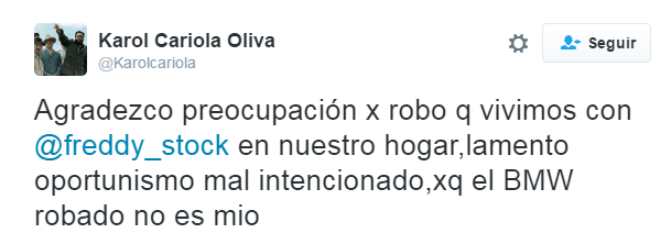 La diputada comunista Karol Cariola sufrió un robo en su casa mientras se encontraba deshabitada en calle García Moreno de Ñuñoa, desde donde fue sustraído un auto BMW perteneciente a un familiar de su pareja, el periodista Freddy Stock.