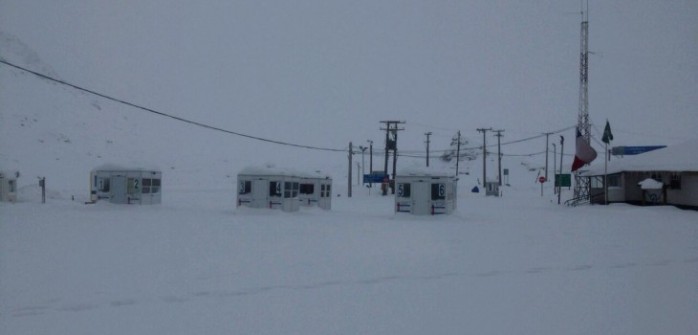Nieve persistente y viento ha sido la constante en el Paso Libertadores que ya ha acumulado más de un metro y medio de nieve, lo que obliga a que el corredor internacional permanezca cerrado.