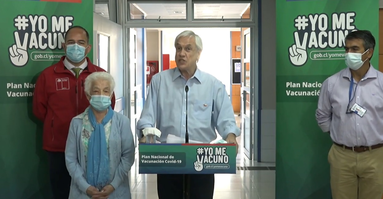 Desde la comuna de Futrono, en la Región de Los Ríos, el Presidente Sebastián Piñera dio inicio al proceso, acompañando a la primera mujer vacunada.