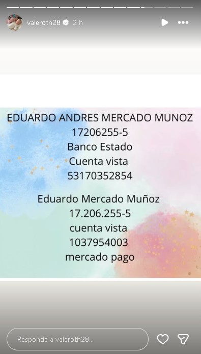 En el despacho con CHV, el padre de familia también agradeció la ayuda que ha recibido, destacando el aporte de la bailarina Vale Roth. “Agradecer a toda la gente que ha ayudado. Darle las gracias a Valentina Roth, se comunicó conmigo, me ayudó económicamente, también ha compartido la cuenta para que vayan depositando”, dijo.