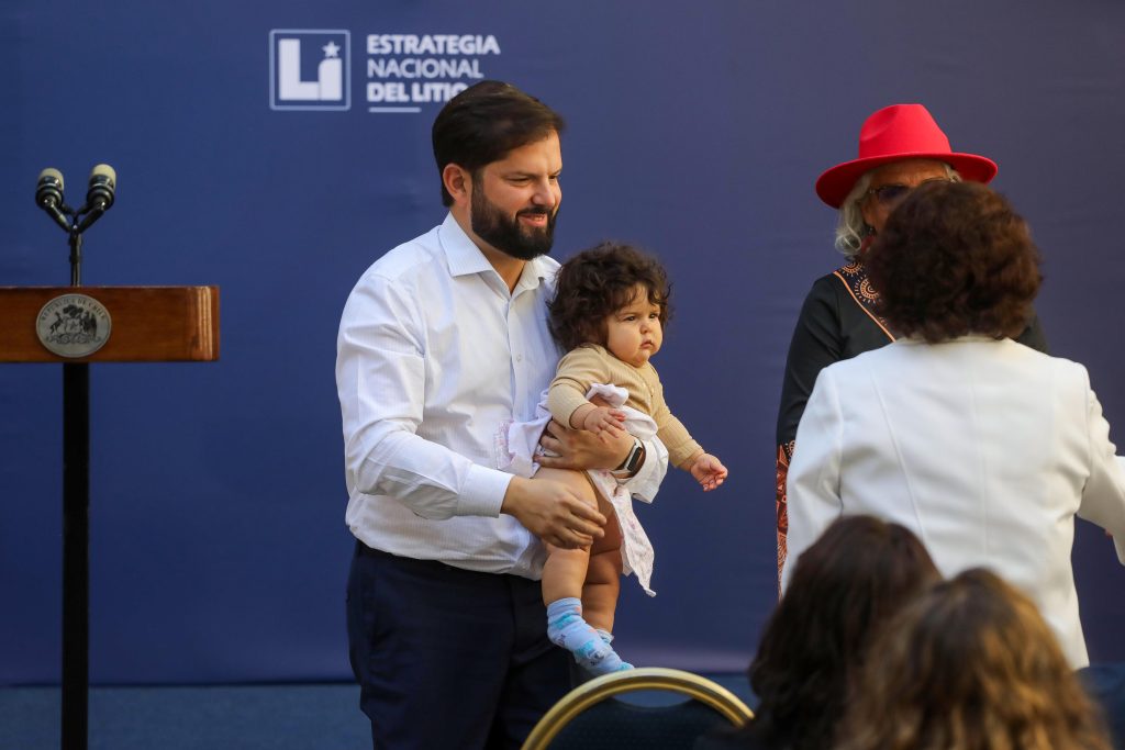 Este jueves, un tierno momento de familia se tomó el centro de atención en La Moneda cuando el presidente Gabriel Boric llegó acompañado de su hija Violeta, nacida el 26 de junio de 2025, para firmar el Contrato Especial de Operación de Litio (CEOL) de Maricunga.