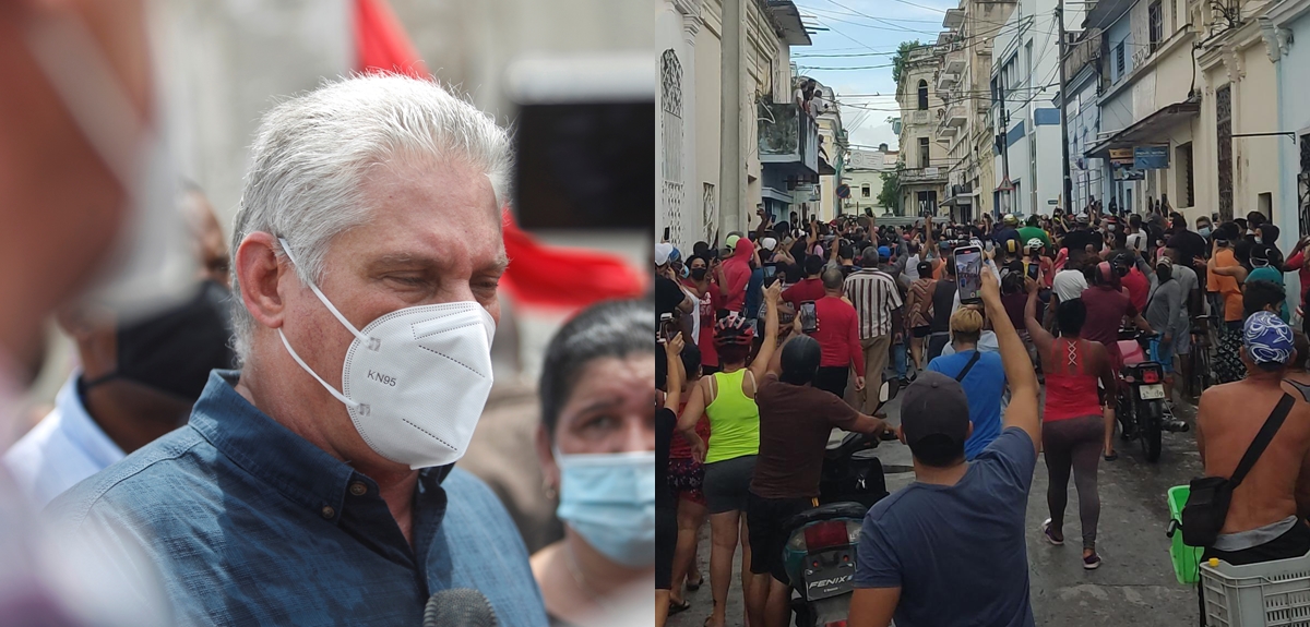 A su regreso de San Antonio de Los Baños, Díaz-Canel calificó de “provocaciones de la contrarrevolución” las protestas antigubernamentales que reclamaron “libertad” y dijeron “¡Abajo la dictadura!”, en momentos en que el país padece una severa crisis económica y sanitaria.
