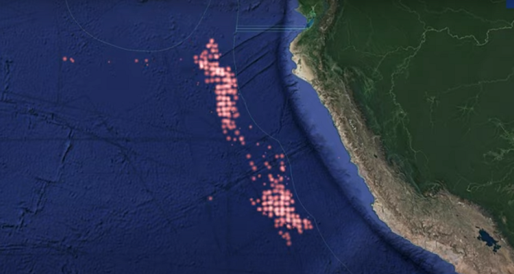 La información fue develada por Oceana, que analizó las rutas de navegación de las embarcaciones a través de la plataforma Global Fishing Watch, en la cual se pudo detectar a un total de 126 embarcaciones que, aparentemente, pescaron durante 23 mil 896 horas, desde el 14 de agosto hasta el 19 de septiembre entre Ecuador y Perú.